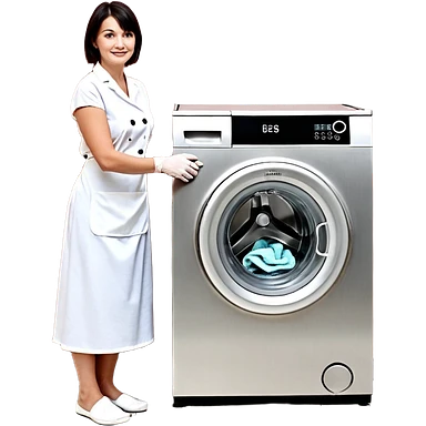 Eine Frau mit dem Kopf in der Waschmaschine feststeckt und zwei Männer ziehen an ihren Beinen um ihr zu helfen emoji
