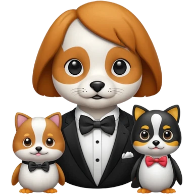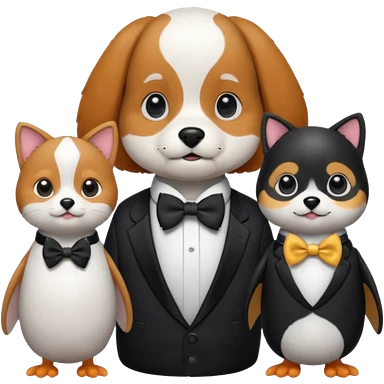 Mother Cat,Grandpa dog and peinguin kid emoji