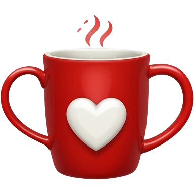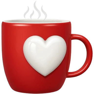 Red mug of coffee with a community coffee logo and a heart above the hot steam emoji