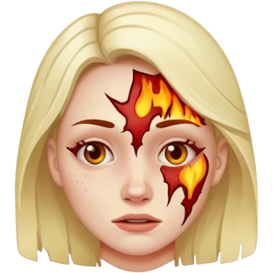 mujer con quemadura en la cara emoji