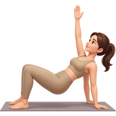 Mujer haciendo ejercicio con ropa beige emoji