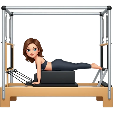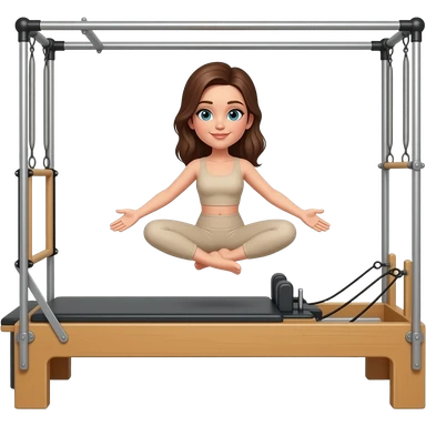 Mujer castaña pilates clase ropa beige emoji