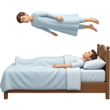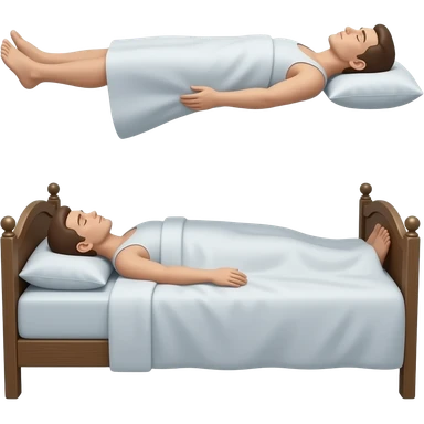 Persona acostada levitando en la cama como si fuera un espíritu emoji