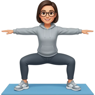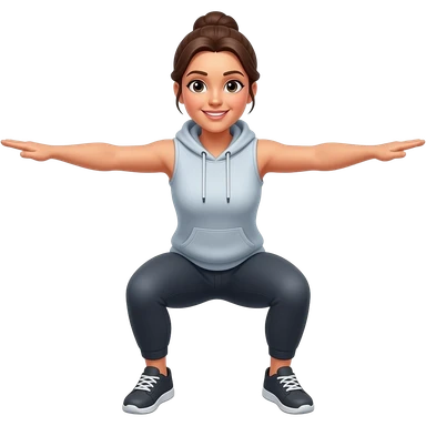 una mujer adulta haciendo ejercicio con sudadera sin brazos extendidos y haciendo sentadillas emoji