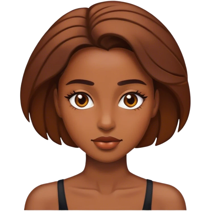 Mujer joven morena ojos marrones labios gruesos nariz pequeña media melena emoji