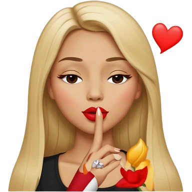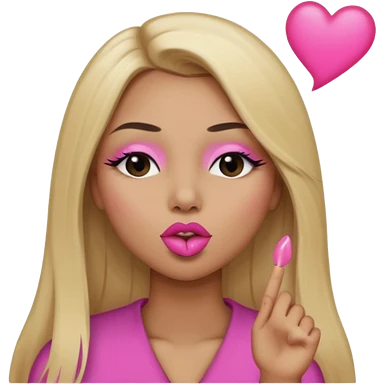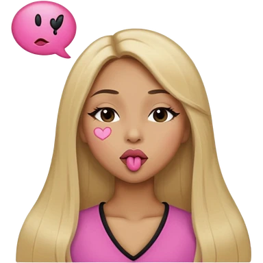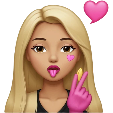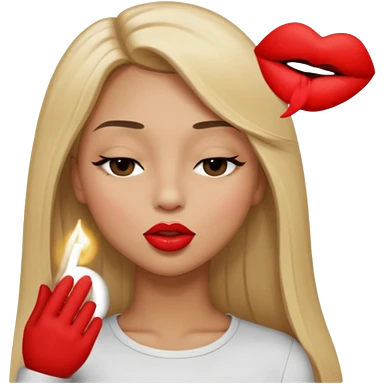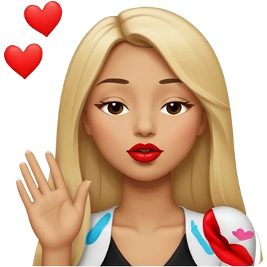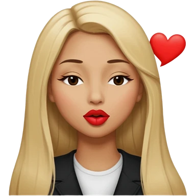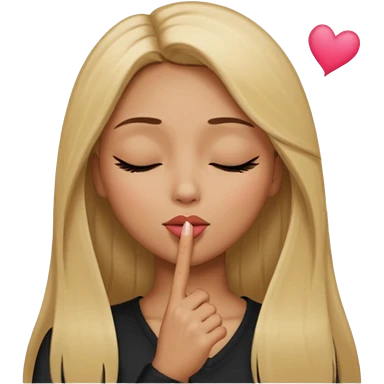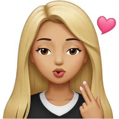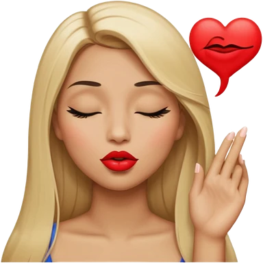 Mujer color de piel moreno claro, posicionada de lado, con cabello rubio largo, lacio y suelto, ojos negros, un ojo cerrado, mandando un beso de lado emoji
