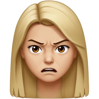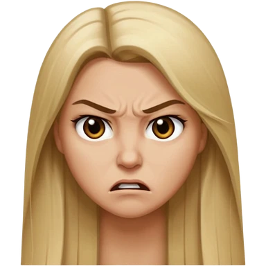 Mujer color de piel moreno claro, con cabello rubio largo, lacio y suelto, ojos negros, enojada emoji