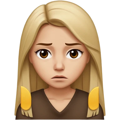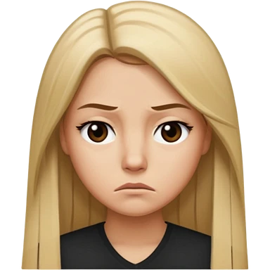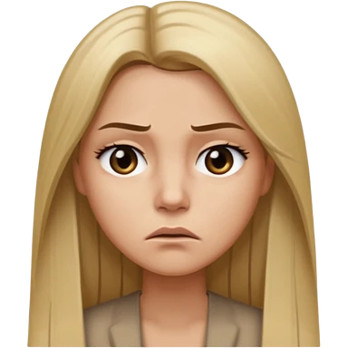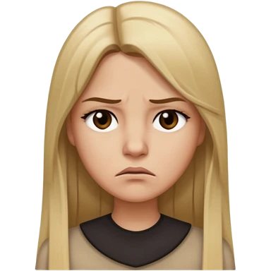 Mujer color de piel moreno claro, con cabello rubio largo, lacio y suelto, ojos negros, molesta emoji