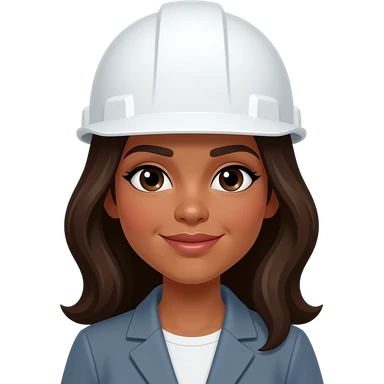 Mujer ingeniera con casco blanco, de piel trigeña y cabello castaño oscuro largo, que el emojis sea pequeño para ponerlo en textos emoji emoji