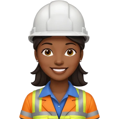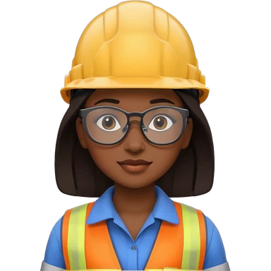 Mujer ingeniera,latina, con chaleco reflejante ,casco blanco de seguridad, lentes negros; cabello café oscuro y lacio hasta el hombro emoji