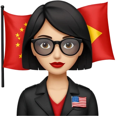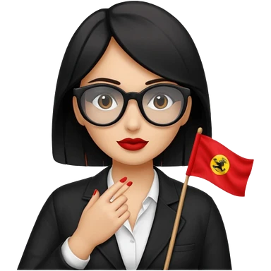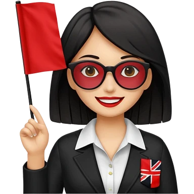 Una mujer morena (de pelo) con una coleta de color negro) y gafas de sol de color negro y una bandera roja en la mano emoji