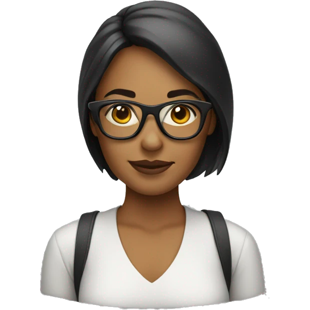 Mujer con gafas, gafas tectangulares, con coleta, morena emoji