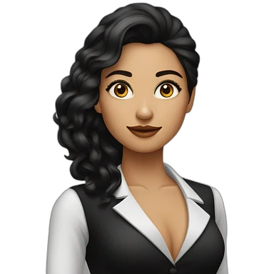 mujer de piel morena ojos marrones pelo largo negro con traje formal negro emoji