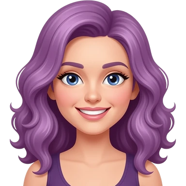 mujer coqueta de cabello magenta ondulado y sonriendo coqueta emoji | AI Emoji Generator
