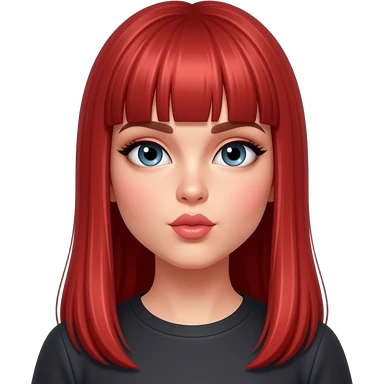 mujer coqueta de cabello roso liso largo y con curtain bangstirando besito emoji