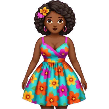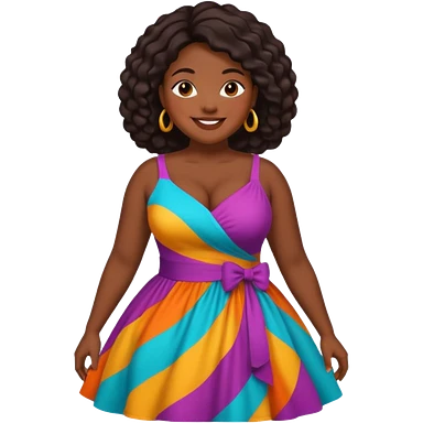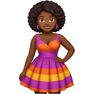 Mujer curvy afro, con piernas gordas y vestimenta cómoda, usando delantal,con una corona sobre su cabeza y sonrisa contagiosa. emoji