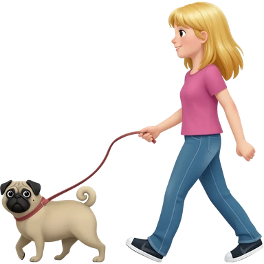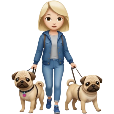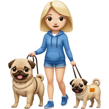 haz una chica rubia paseando a su perro pug emoji