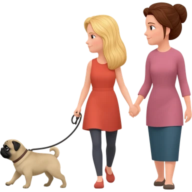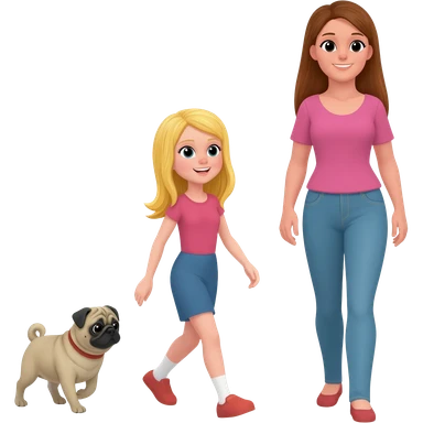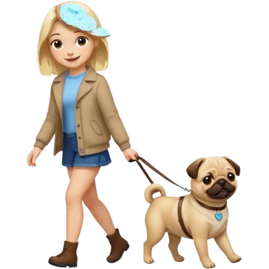 haz una chica rubia paseando a su perro pug con su mama emoji
