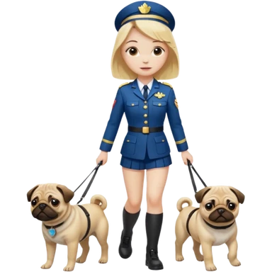 haz una chica rubia en uniforme paseando a su perro pug emoji