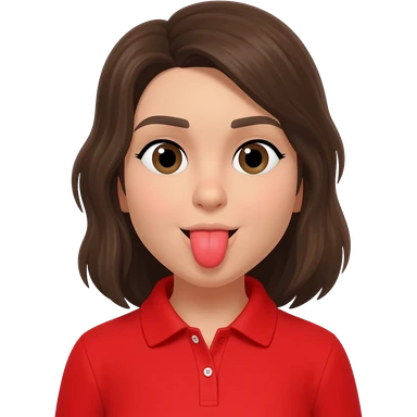 Mujer de pelo cafe oscuro y largo, y tez blanca comiendo emoji