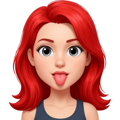 Mujer sacando la lengua con peló rojo emoji