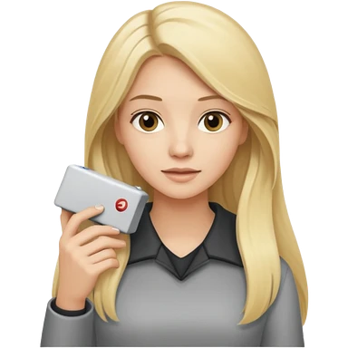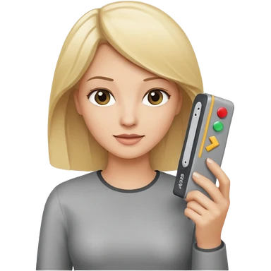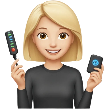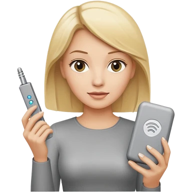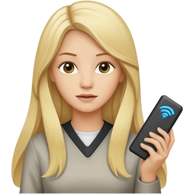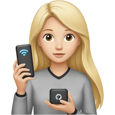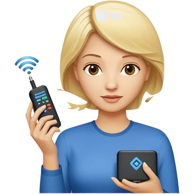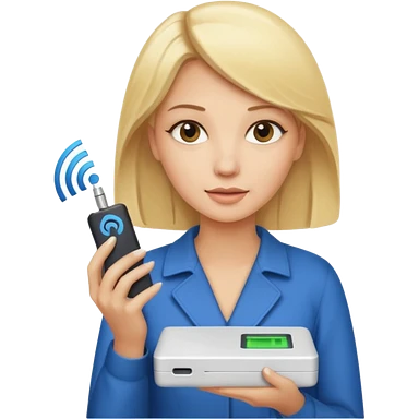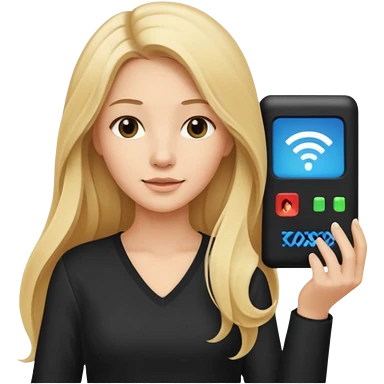 mujer joven rubia con pelo largo y saco rojo con modem de internet emoji
