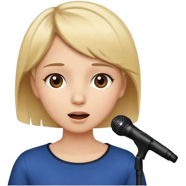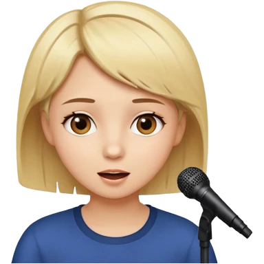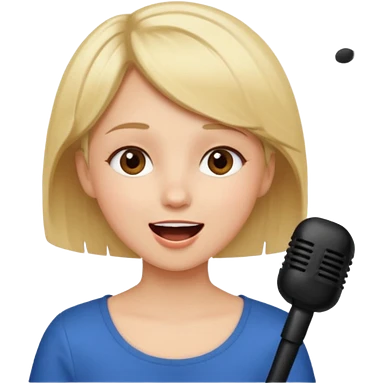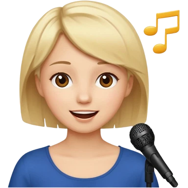 Crea una chica cantando con pelo rubio corto con ojos cafes emoji