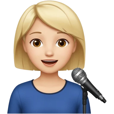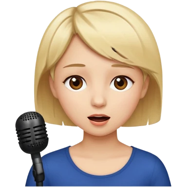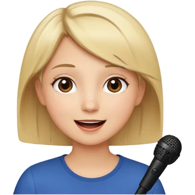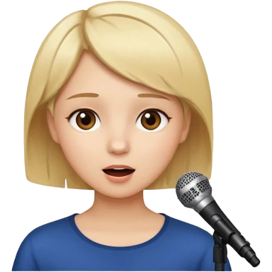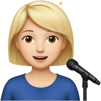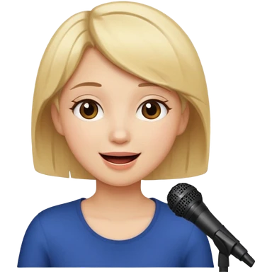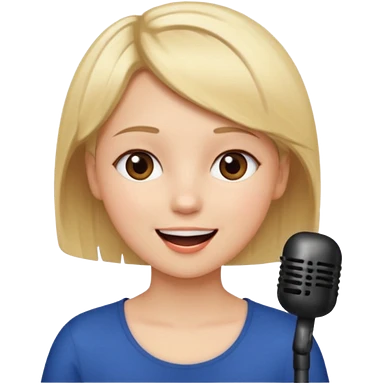 Mujer blanca de pelo rojo,lacio y largo ,ojos Carmelitas cantando con micrófono en la mano emoji