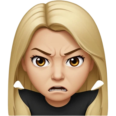 Mujer color de piel moreno claro, con cabello rubio largo, lacio y suelto, ojos negros, enojada emoji