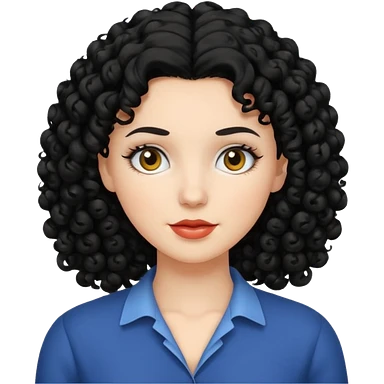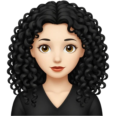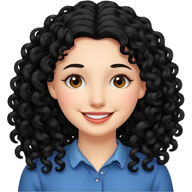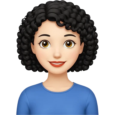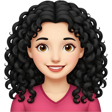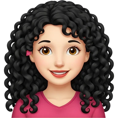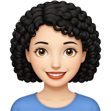 mujer blanca con cabello largo rizado negro sonriendo emoji