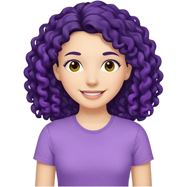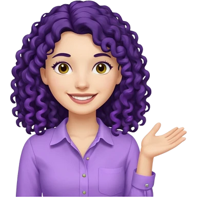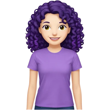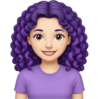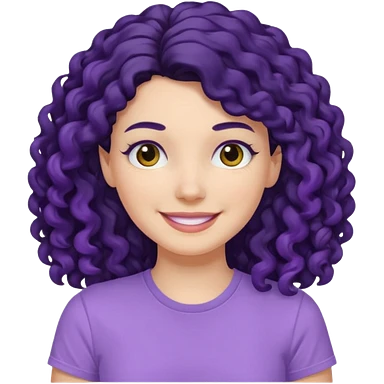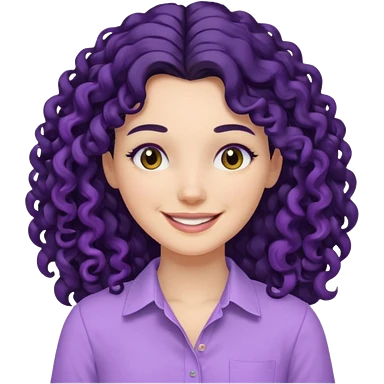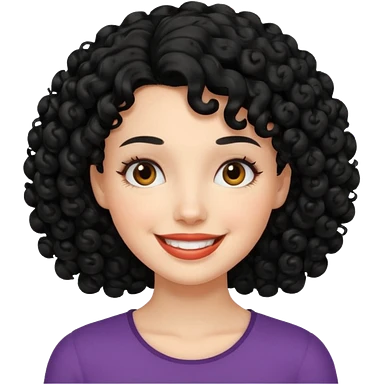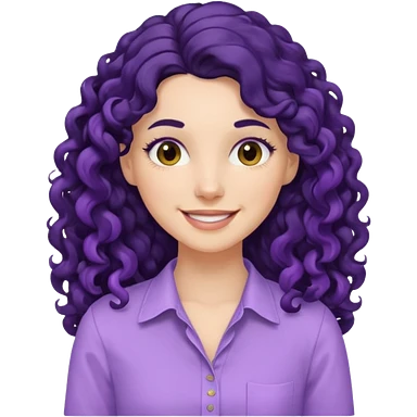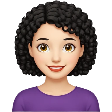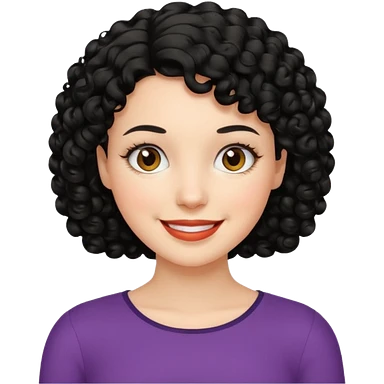 mujer blanca con cabello largo rizado negro sonriendo con camisa lila emoji