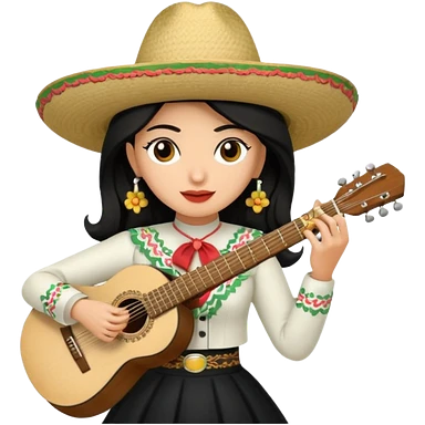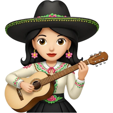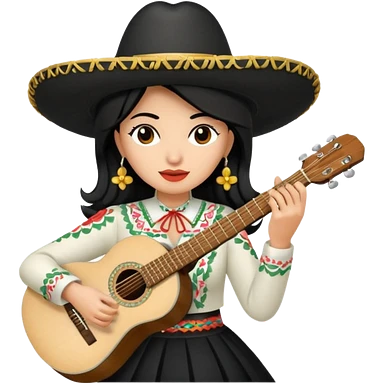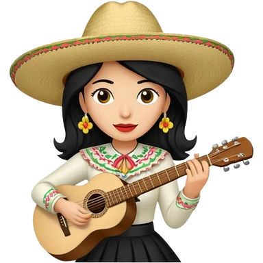 Mujer blanca con cabello negro teniendo un sombrero de mariachi sosteniendo una guitarra emoji