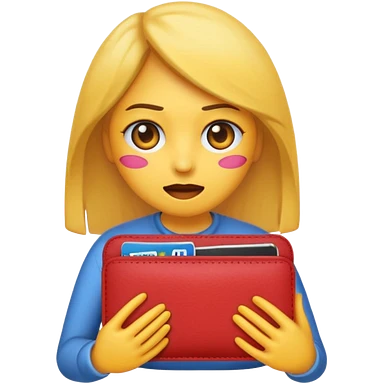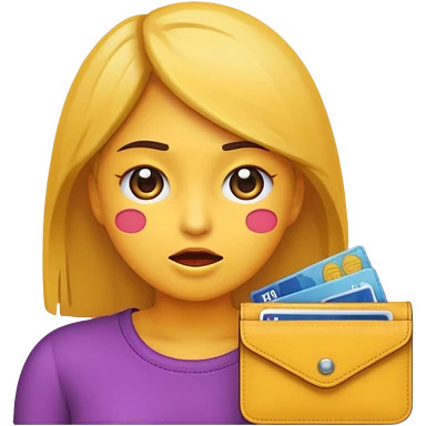 Emoji de chica muy desesperada, llorando, con ojos grandes y lágrimas, sosteniendo una billetera vacía al revés, estilo emoji minimalista, dramatismo exagerado, fondo transparente. emoji