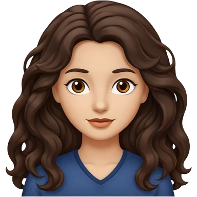 mujer pelo ondulado, pelo largo color marron oscuro, ojos marrones oscuros emoji