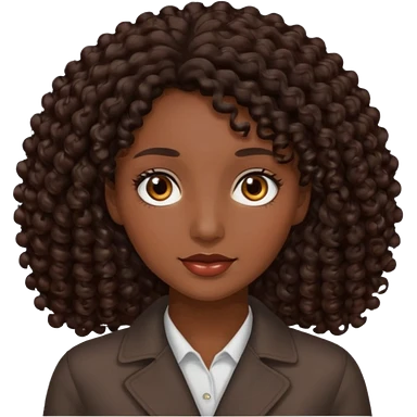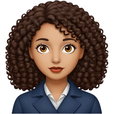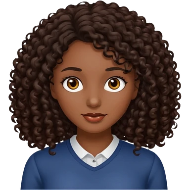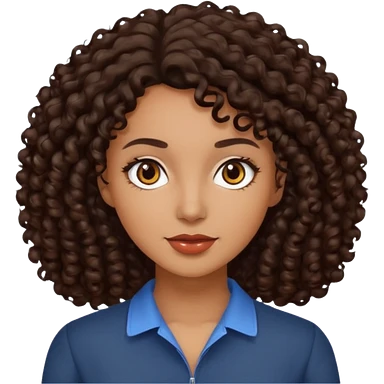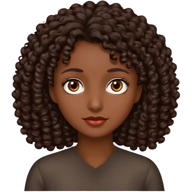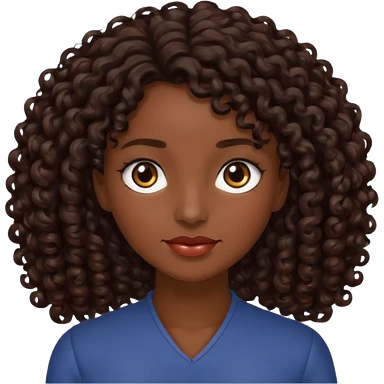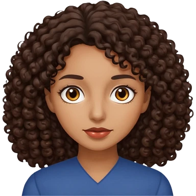 mujer pelo rizado pero no tanto largo color marron oscuro, ojos marrones oscuros emoji | AI Emoji Generator