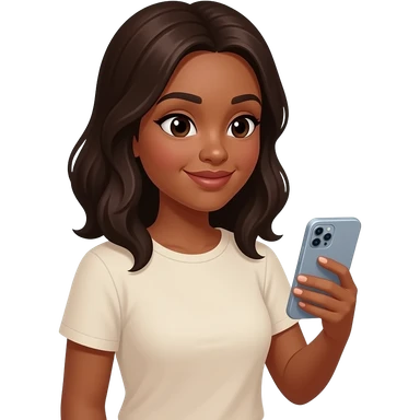 girl with brown hair and light skin taking a te emoji