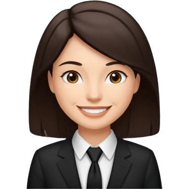 Mujer de pelo cafe oscuro y tez blanca, con camisa blanca y corbata/pañoleta negra, no tiene saco emoji
