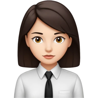 Mujer de pelo cafe oscuro y tez blanca, con camisa blanca y corbata/pañoleta negra, sin saco emoji