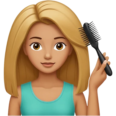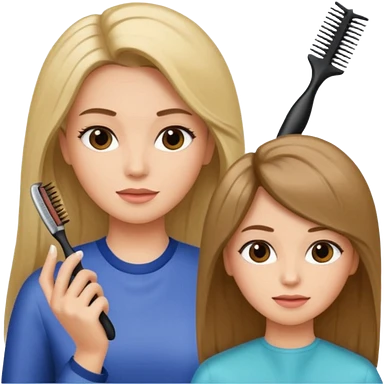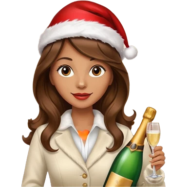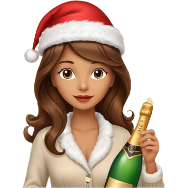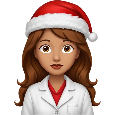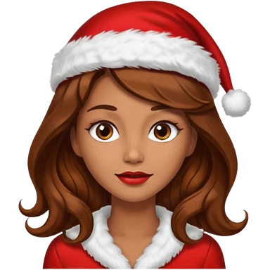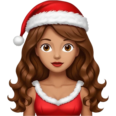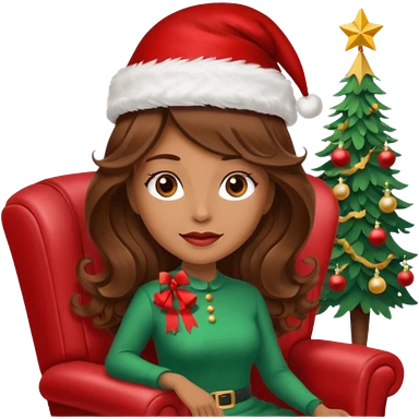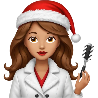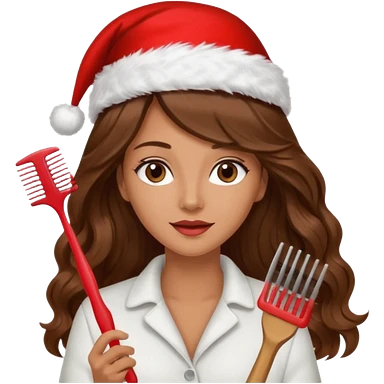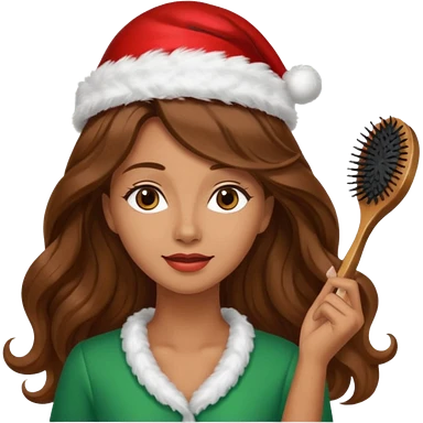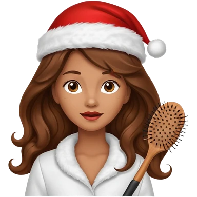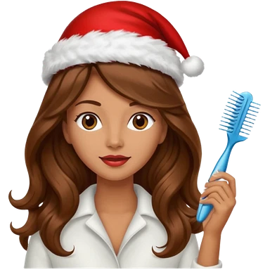 mujer peinandose en la peluqueria y con un gorro de navidad, cabello largo café y ondulado emoji