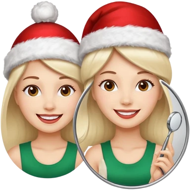 mujer peinandose en la peluqueria y con un gorro de navidad emoji