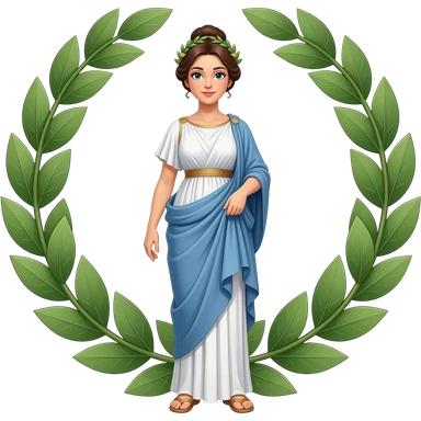 mujer grecia antigua blanca cabello café largo, corona de laurel cuerpo completo emoji