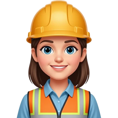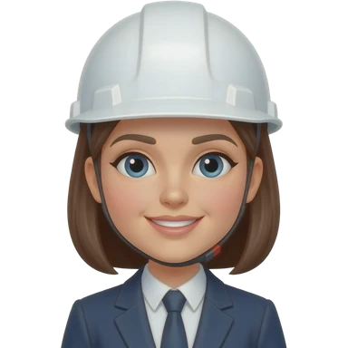 Mujer ingeniera con casco blanco, de piel trigeña y cabello castaño oscuro largo, que el emojis sea pequeño para ponerlo en textos emoji emoji