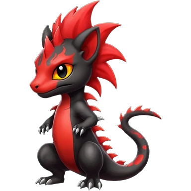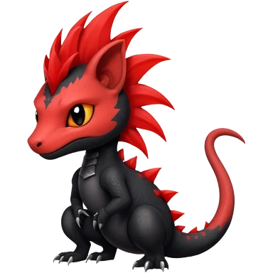 Shiny cool badass Fiery gothic evil black and red salandit-Liten-torracat with a red Mohawk emoji