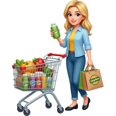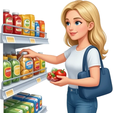 mulher loira no supermercado fazendo compras emoji