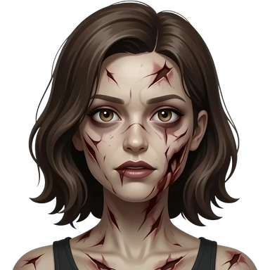 mulher, pele e rosto zumbi, cabelo ate o ombro levemente ondulado nas pontas e olhos escuros emoji