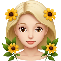mulher com cabelo cacheado curto com uma flor ao lado, pele parda, olho castanho escuro emoji