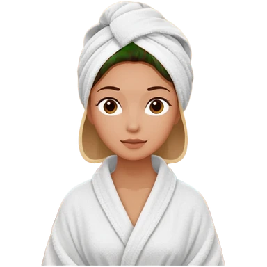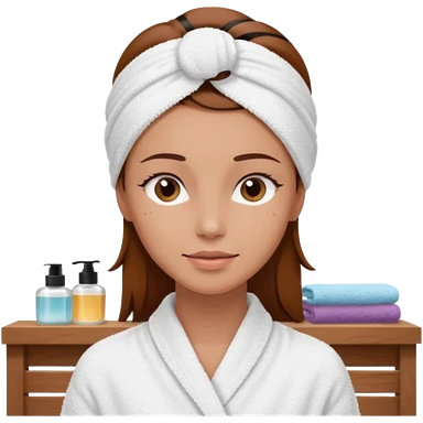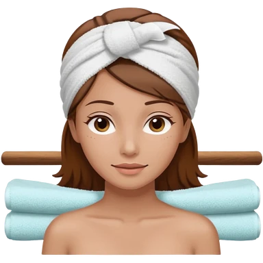 rosto de uma mulher com uma faixa de toalha no cabelo de cor todo castanho como se estivesse no spa, sem o pescoço, somente o rosto emoji