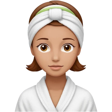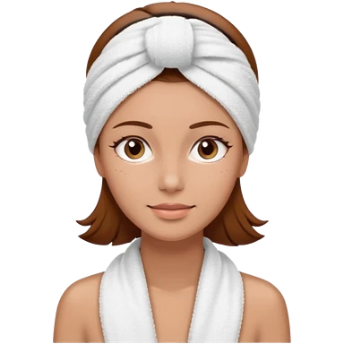 rosto de uma mulher com uma faixa de toalha no cabelo de cor todo castanho como se estivesse no spa, sem o pescoço emoji