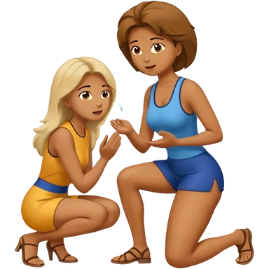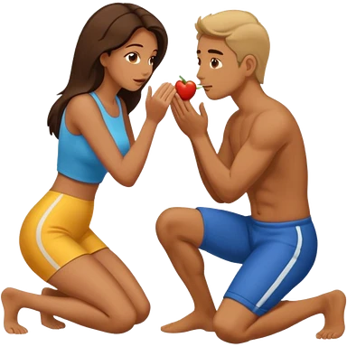 Mulher de joelhos fazendo um boquete em um homem emoji