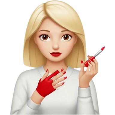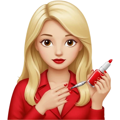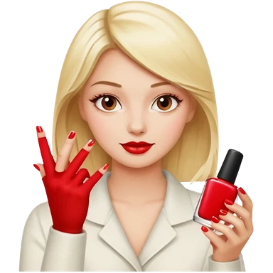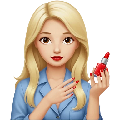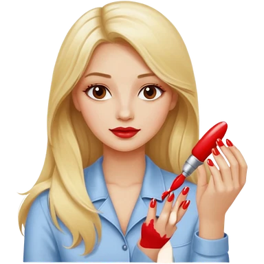 mulher loira, cabelos longos pintando unhas com esmaltes emoji